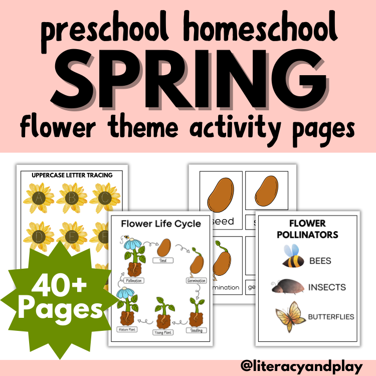 The math section is play-based inspired. Cut out the pollinators (bugs and insects) and practice counting 1-10 on the flower with your child.